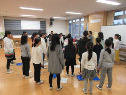 28日(火)の朝、合唱団の練習がありました。「山の朝」で発声練習を行い、「ふるさと」の歌を歌いました。雨の朝でも多くの子どもたちが参加しました。保護者の皆様のご協力に感謝いたします。