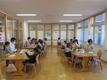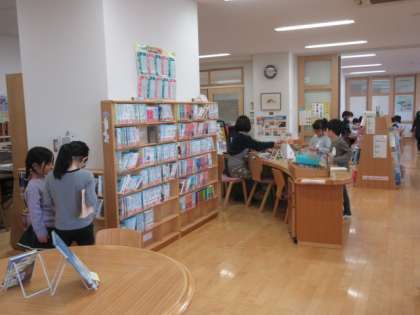 29日(水)の1時間目、1年4組は図書の時間でした。本の返却をしてから自由に読書を楽しみました。司書の先生に本のことを尋ねる姿も見られました。