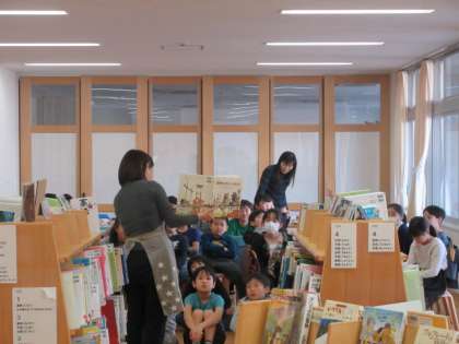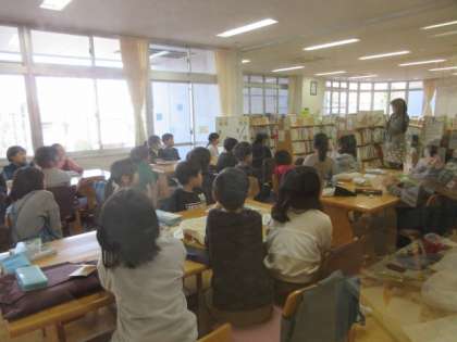 2月3日(月)の5時間目、4年4組は図書の時間でした。最初に司書による「読み聞かせ」がありました。自分で場所を決めて、物語の世界を楽しんでいました。その後、本を返したり、読みたい本を探したりしました。