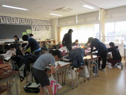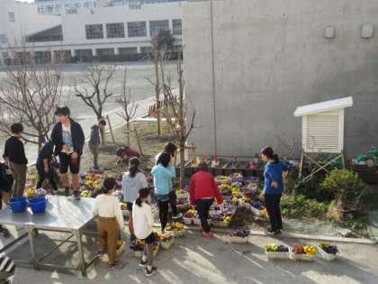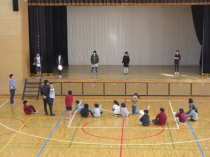 委員会活動は、当番を決めて常時活動するところが多いです。そのため、前月の取り組みを振り返り、今月の活動について話し合います。写真は上から、オリンピック・パラリンピック委員会、栽培委員会、集会委員会です。栽培委員会は、パンジーのプランターを「2020」から違う文字に並べ替えていました。集会委員会は、次の集会の予行練習をしていました。