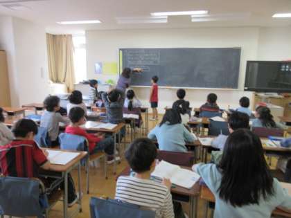 4日(火)の2時間目、2年1組、2組、3組は算数の時間でした。4クラスに分かれて学習しています。たし算やひき算の文章問題を「テープ図」を使って考えました。