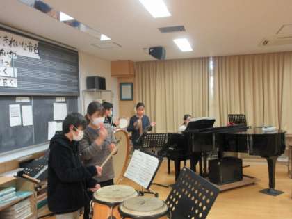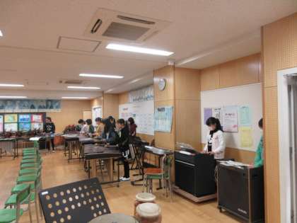 7日(金)の朝、6年生は第一音楽室で合奏の練習をしていました。ピアノ、大太鼓、小太鼓、鉄琴、木琴など、先生の声に合わせて演奏をしています。難しいリズムもありますが、上達しています。