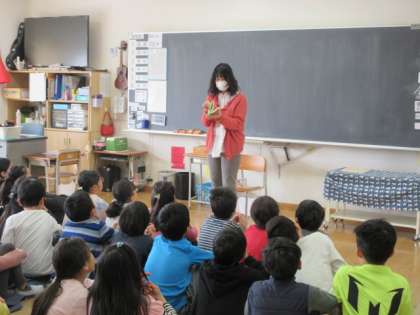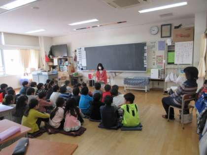 7日(金)、3年生はお話会に参加しました。今回も読み聞かせグループ「たんぽぽ〜語りと本」の方にお越しいただきました。ネコやチョコレートが登場するお話や絵本を読んでくださいました。写真は1組の様子です。