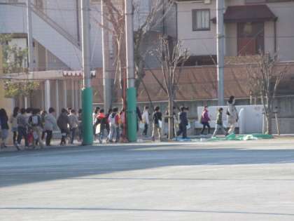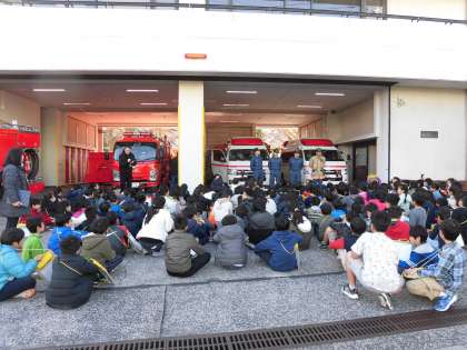 8日(土)は授業日でした。3年生は成城消防署千歳出張所に見学に行きました。午前8時25分にピロティに集合し、先生の話を聞きました。場合によっては、「消防車や救急車の出動要請があるかもしれない」という前提のもと、2組を先頭に出発しました。