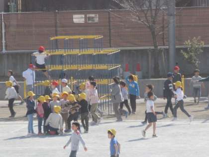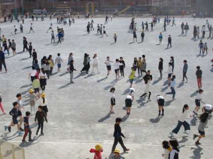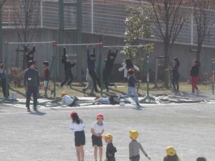 10日(月)の昼休みの様子です。クラスで長なわの練習をしたり、遊具で遊んだりしています。元気な声が響く校庭です。