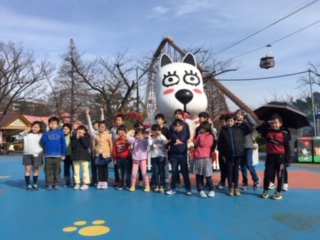 よみうりランドに到着です。まずはみんなで記念撮影。これからグループごとに園内を周ります。