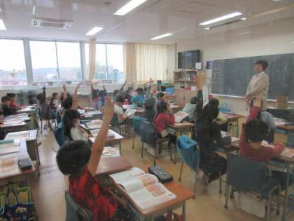14日(金)の5時間目、2年4組は道徳の時間でした。資料名「なまけにんじゃ」を読んで、しっかりとやりぬく心について考えました。