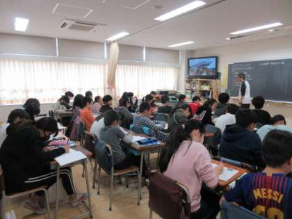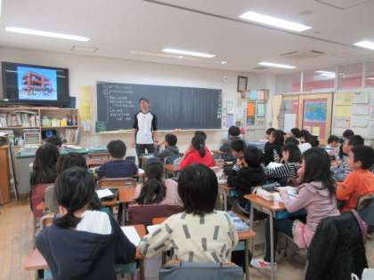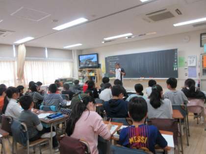 17日(月)の3時間目、5年4組は社会科の時間でした。単元名「自然災害とともに生きる」から、東日本大震災の学習をしていました。当時子どもたちは2歳。映像を見てとても驚いていました。