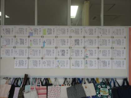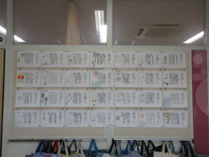 4年生の廊下には、「二分の一成人式での誓いの言葉」が掲示されています。自分の思いを一字一字丁寧に書いています。