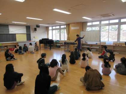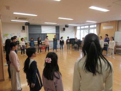 25日(火)の朝、合唱団の練習がありました。「地球の子ども」の歌を練習していました。グループになったり、輪になったりしながら互いの声を聞いて歌っていました。