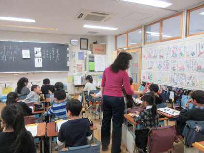 26日(水)の3・4時間目、3年1組は習字の時間でした。行の中心に気を付けながら「小川」と書く練習をしていました。自分の名前を何度も練習する姿がありました。