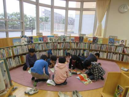 26日(水)の4時間目、3年2組は図書の時間でした。最初に司書による読み聞かせがありました。三匹の子豚が出てくるお話でしたが、子どもたちは驚いたり、笑ったりしていました。その後、本を返却してから、それぞれお気に入りの場所で読書を楽しんでいました。
