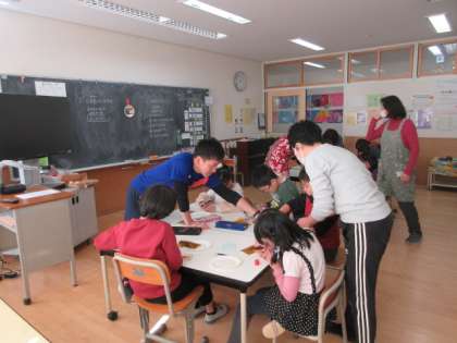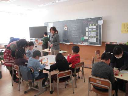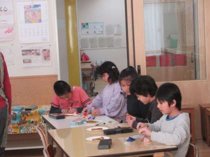 27日(木)の3・4時間目、ひかり学級は図画工作の時間でした。折り紙を使って「おひなさまかざり」を作りました。丸い紙皿に金色の折り紙を貼り、その上に折り紙で折ったお内裏様とおひな様を飾りました。