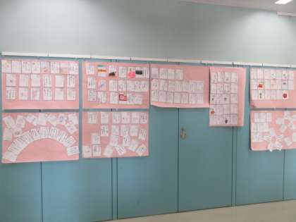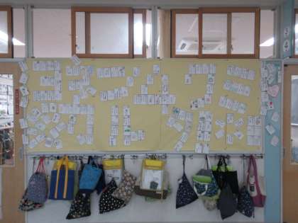 3年生は国語の学習で「カルタ」作りに取り組みました。まず、カルタにする言葉を集めました。次に、読み札を作りました。短くまとめられているか、読みやすいリズムになっているかなどに気を付けて作りました。最後に、読み札の文に合った絵を描いて取り札を完成させました。