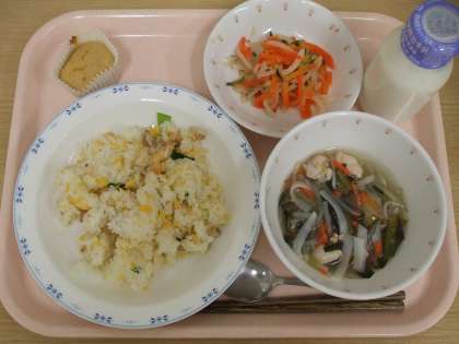 今日はベトナム料理給食です。ベトナム料理は、比較的あっさりした味で、野菜をたっぷり使ったヘルシーな料理がたくさんあります。給食でもナンプラーやレモン、唐辛子を使い、本格的な味付けに挑戦しました。今回はフォーとバナナヨーグルトケーキが特に人気でした。