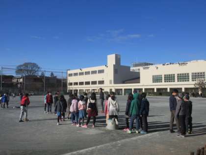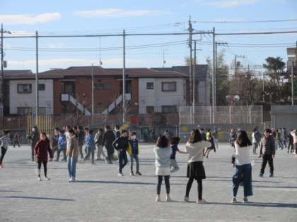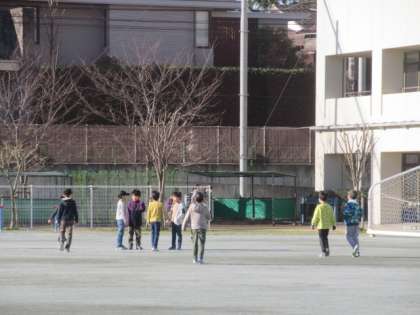 28日(金)の朝、校庭では子どもたちが元気に遊んでいました。クラスの有志で長なわ跳びの練習をしたり、友達とバドミントンをしたりしていました。