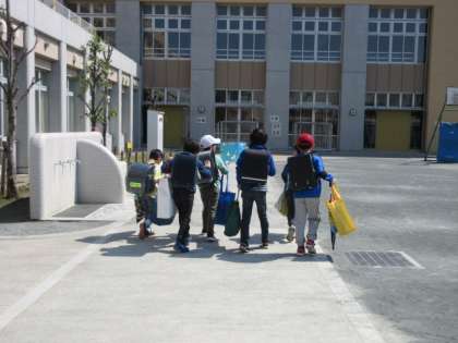 19日(木)午前10時30分から、2年2組と4組が登校しました。ロッカーや机の上に、持ち帰る物が準備されており、子どもたちは持って来た大きな手提げ袋に詰め込んでいました。「4月からは3年生だね。また、頑張ろうね。」の声掛けに「はい」と元気よく答え、「さようなら」と笑顔で帰って行きました。
