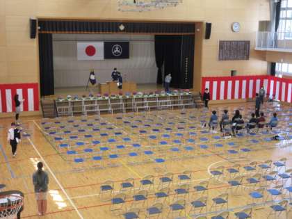 24日(火)、6年生の分散登校日でした。卒業式を翌日に控え、どのクラスも落ち着いて過ごしていました。前半は、2組と3組が登校しました。教室で担任の先生と過ごした後は、体育館に移動しました。専科の先生や他学年の先生と一緒に「卒業証書授与」の練習をしました。
