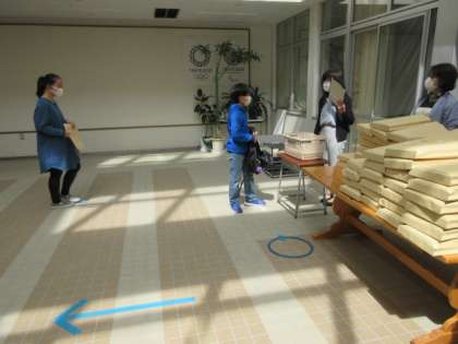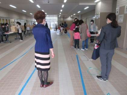 9時半より予定通りに開始しております。校庭で、学年ごとに間隔を開けて並んでいただき、順番にお呼びしてピロティに入り、受け取っていただいています。3密を避ける配慮を最大限に行っておりますので、どうぞ安心してお越しください。なお、提出物をお忘れなくお持ちください。