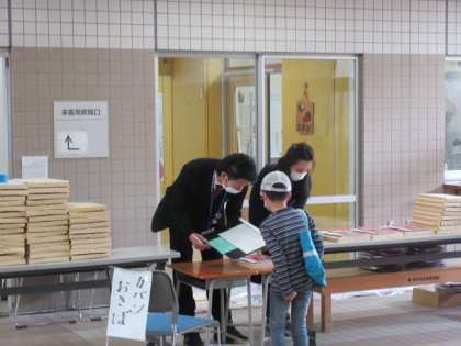 教科書等の配布は、順調に進んでいます。教科書等の受け取りについて、皆様のご協力ありがとうございます。本日の配布時間はあと30分ほどです。もし提出予定の書類を本日提出することが難しい場合は、近くの先生にお声かけください。よろしくお願いします。