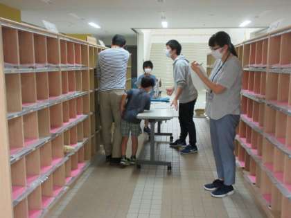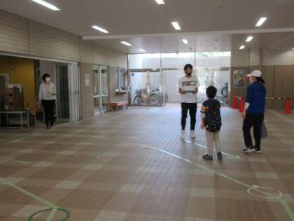 3密もなく、無事に配布が進んでおります。子供たちは皆元気で、久しぶりの登校を楽しんでいるようです。また、保護者の方も、ご家庭でのお子さんの様子をお話しいただくなど、和やかな雰囲気が、ピロティに漂っています。
