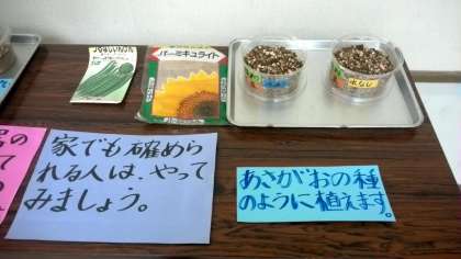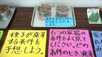 インゲンマメの発芽実験の写真を大きくしてみました。予想するときに使ってくださいね。