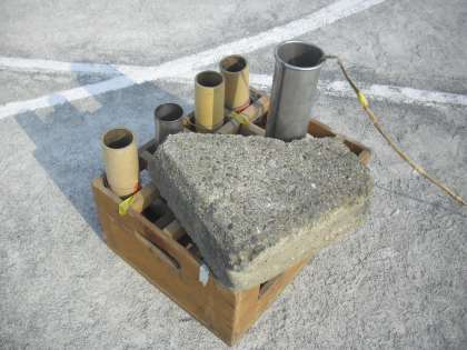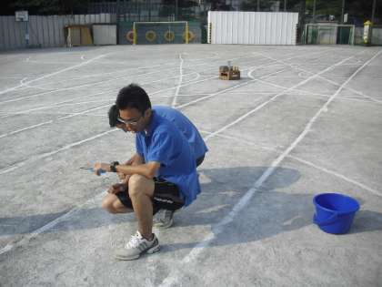 午前6時半に、運動会の実施が決まり、7時に実施の合図である花火を打ち上げました。花火を打ち上げる資格を持つ教員の手によって大空に向けて打ち上げ、実施を知らせる爆音が響き渡りました。