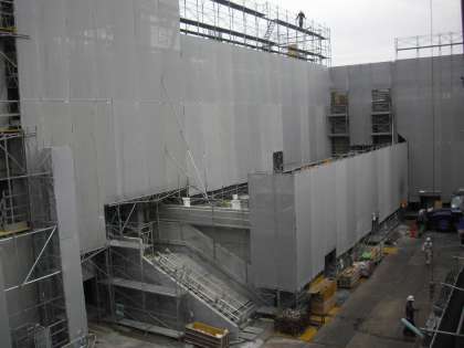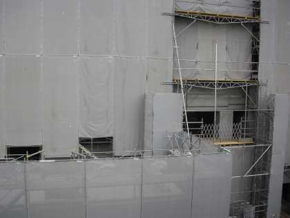 現在の新校舎建設工事の様子です。今日は小学校は運動会の振替休業日ですが、工事は予定通り進んでいます。時々雨が降ったり止んだりする曇り空ですが、安全に作業が進むことを願っています。