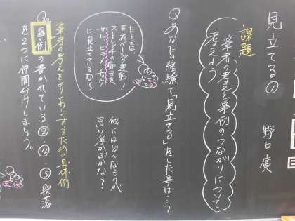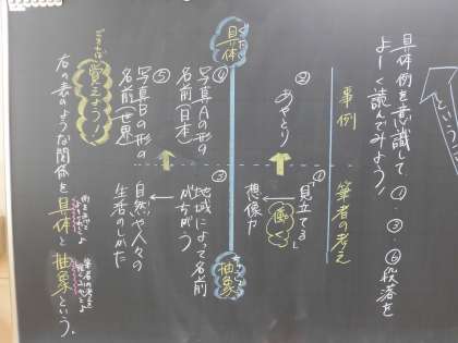 説明文「見立てる」の板書2です。ワークシート2、3に取り組む時の参考にしてください。