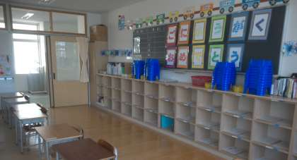 教室の後ろにロッカーがあります。
