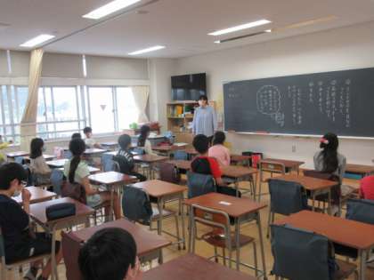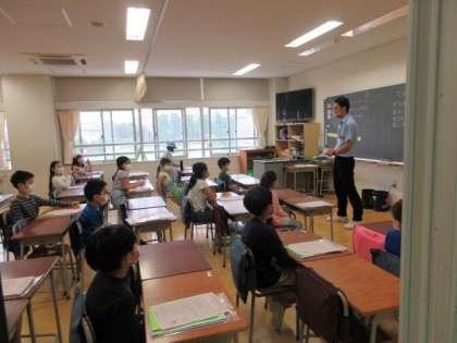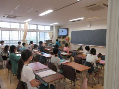 分散登校午後の部の授業が始まりました。2年1組・2組・3組は2階、2年4組・5組は3階、4年生と6年生は全クラス4階が教室です。どのクラスの子供たちも担任の先生のお話をよく聞いて授業をしています。教室での子供たちは、一つおきに互いちがいになるように座っています。先生からソーシャルディスタンスを意識するように各学級でお話をしました。授業中は、発達段階に応じて交流の仕方を工夫して発表や発言をする、先生が個別指導や丸付けを主に行うなど、100%は難しいですが、そうしてお互いを思いやって過ごすことができるといいなと思います。