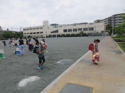 今日は、午後から校庭もぬかっているところがなくなりましたので、校庭に並んでから、一人ずつ校内に入ってもらう形を取りました。時間は多少掛かりますが、大きな混乱もなく、迎え入れることができました。ちなみに本日は、3年生と5年生が、AとBに分かれて登校しました。