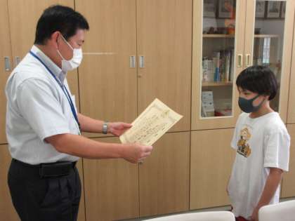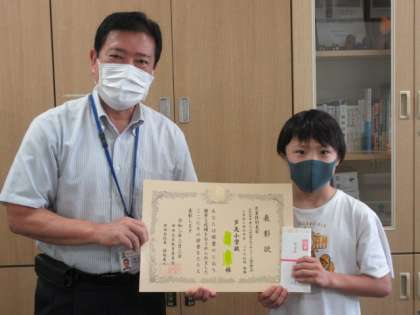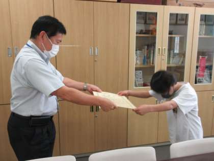 昨年度、各方面で優秀な成績を上げた子供たちを、「児童特別表彰」として世田谷区が表彰しました。通常ですと全校朝会で紹介するのですが、このような状況ですので、この「学校日記」で校長室での表彰の様子をお伝えします。一人目は、5年生の男子、レスリングで全国優勝を遂げたお子さんです。(ホームページ上ですので、お名前は控えさせていただきます。なお、写真掲載は保護者の方のご承諾をいただいております。)