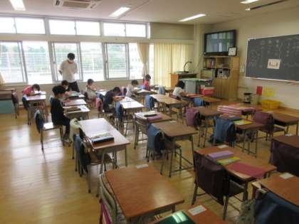 今日も、担任をフォローする形で、他学年の担任や、専科教員、講師等の協力の下、全校一丸となって1年生の指導に当たりました。ある場面では、マンツーマン対応になることもあり、子供たちも緊張度が増しているのが分かりました。「大丈夫、安心して!」