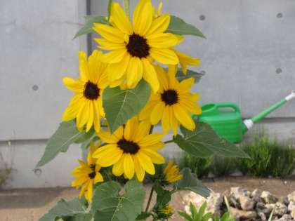 少し前にアップしたヒマワリが、今日確認すると、かなり花を付けていました。1年生の入学を、祝福しているようでした。