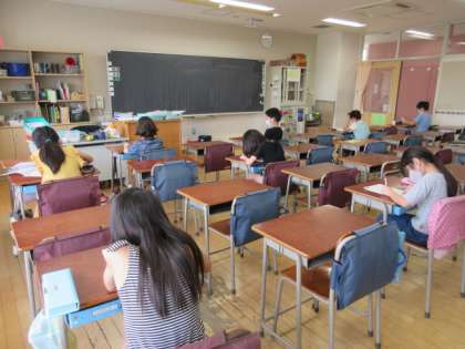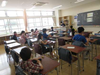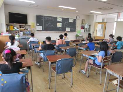 今日は4年生の分散登校日です。4年1・2・3組の教室の様子です。3時間目に撮影をしたのですが、この時間は、社会の都道府県の学習と、漢字テストをしていました。集中して丁寧に漢字を書いている子が多かったです。さすが!芦花小の4年生です。