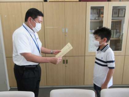 昨年度、各方面で優秀な成績を上げた子供たちを、「児童特別表彰」として世田谷区が表彰しました。通常ですと全校朝会で紹介するのですが、このような状況ですので、この「学校日記」で校長室での表彰の様子をお伝えします。間が空きましたが、3人目は、4年生の男子、全日本ランバイク選手権で第5位となったお子さんです。(ホームページ上ですので、お名前は控えさせていただきます。なお、写真掲載は保護者の方のご承諾をいただいております。)