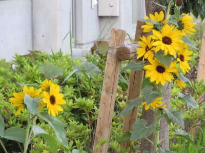 ヒマワリには、いつの間にか子分ができ、その2株目もたくさんの花を付けています。本当に、夏なのではないかと思える状況です。