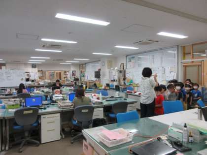 職員室の中は、やはり緊張するようで、静かに、遠巻きにのぞき込むというような感じでした。