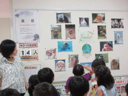 保健室は、先日、校長も紹介した動物たちの「笑顔」の写真コーナーが好評でした。