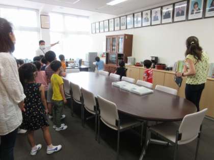 最後の写真は、おまけでしょうか? 偶然、校長室に通された子供たちの様子です。歴代校長の額写真に目が留まり、「あの人たち誰かな?」と質問する様子がありました。