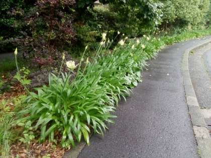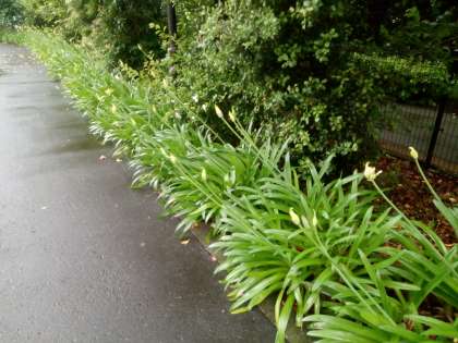この花は「アガパンサス」といいます。7月にかけて、薄紫色の小さな花をたくさん付けます。実はこの写真は、皆さんの通学路のすぐ近くで撮ったもので、今年も、最近、花が咲き始めました。