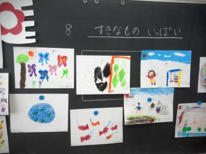 出来上がった絵には、フルーツや金魚、サッカーなどに加えて「宇宙」や「家族と行った○○」など、こちらが想像もつかないものが飛び出してきました。