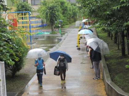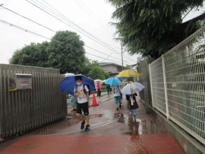 今日は、雨が降る中での分散登校日でした。色とりどりの傘がきれいな景色を映し出しています。3年生の子は、水たまりに長靴を入れてピチャピチャしながら楽しそうに歩いています。5年生や6年生の子は、少し恥ずかしがりながらも、きちんとあいさつをすることができました。1年生は黄色い帽子に、雨がっぱ。2年生や4年生やひかり学級の子は私が手を振ってあいさつをすると、手をふりかえしてあいさつしてくれる子が多かったです。分散登校、みんながんばりましたね。来週からいよいよ本格的に通常授業が始まります。クラスのみんながはじめて全員顔をあわせます。元気よく登校してくるのを待っています!