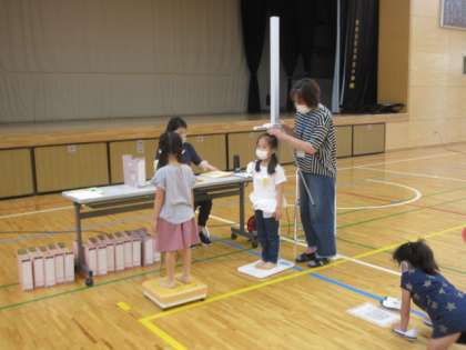 2枚目と3枚目の写真は、2日前の24日(水)に体育館で身体計測をしたときの様子です。身長と体重を測りました。保健の先生のおっしゃることをよく聞いて計測できました。いつもお世話になっている地域学校支援コーディネーターの方にも1年生のお手伝いをしていただきました。ありがとうございます。