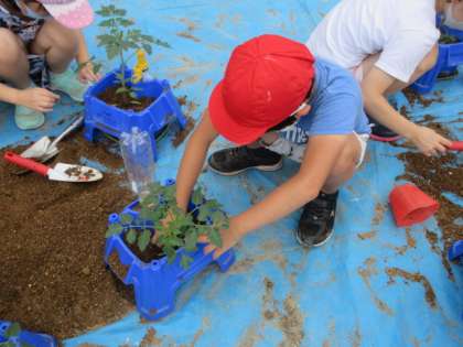 2年生 生活科 ミニトマトの苗を植えよう その2(6/26)