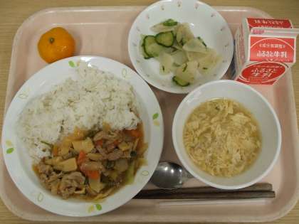 米(山形)、押麦(福井・富山)、豚肉(北海道)、鶏卵(青森)、豆腐(東京)、カットわかめ(韓国)、白ごま(スーダン・パラグアイ)、たけのこ水煮(九州)、にんにく・にんじん(青森)、しょうが(高知)、たまねぎ(兵庫)、ピーマン(茨城)、チンゲンツァイ(千葉)、ねぎ・きゅうり(埼玉)、大根(北海道)、冷凍みかん(和歌山)