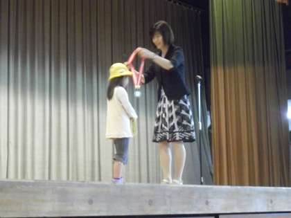 続いて、世田谷区わんぱく相模で学年の部で2位になった児童の表彰をしました。渡部校長から、賞状とメダルが手わたされました。これからも活躍した児童については、紹介していきます。