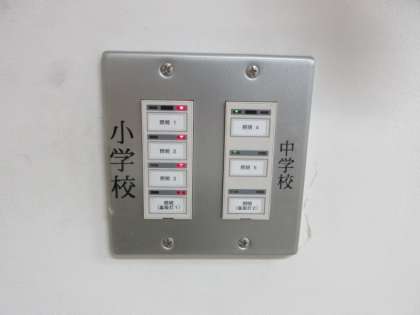 蛍光灯のスイッチは「小学校」側と「中学校」側の表示が分かりやすくなりました。