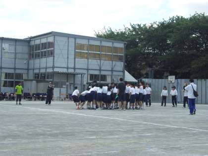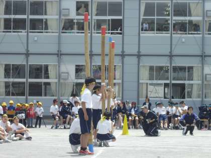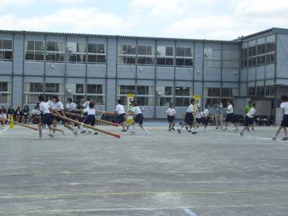 力強い中学生の競技が続きます。芦花中学校の生徒の力いっぱいの取り組みやクリーンな態度は、見ている小学生にもその姿勢が伝わります。中学生の背中は大きいです。
